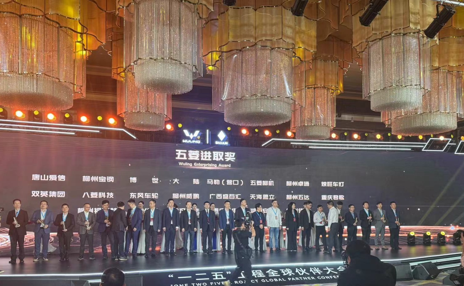2024年3月28日,上汽通用五菱汽車股份有限公司召開了的主題為“擁抱新變化 共創(chuàng)新可能”的2024年“一二五”工程全球伙伴大會(huì),此次大會(huì)匯聚了眾多業(yè)內(nèi)領(lǐng)軍企業(yè),安達(dá)股份作為上汽通用五菱多年來的資深合作伙伴,受邀參加本次會(huì)議,憑借產(chǎn)品優(yōu)質(zhì)、技術(shù)創(chuàng)新榮獲2023年“五菱進(jìn)取獎(jiǎng)”,公司總經(jīng)理助理、銷售總監(jiān)張尹(圖右二)代表公司上臺(tái)領(lǐng)獎(jiǎng)。